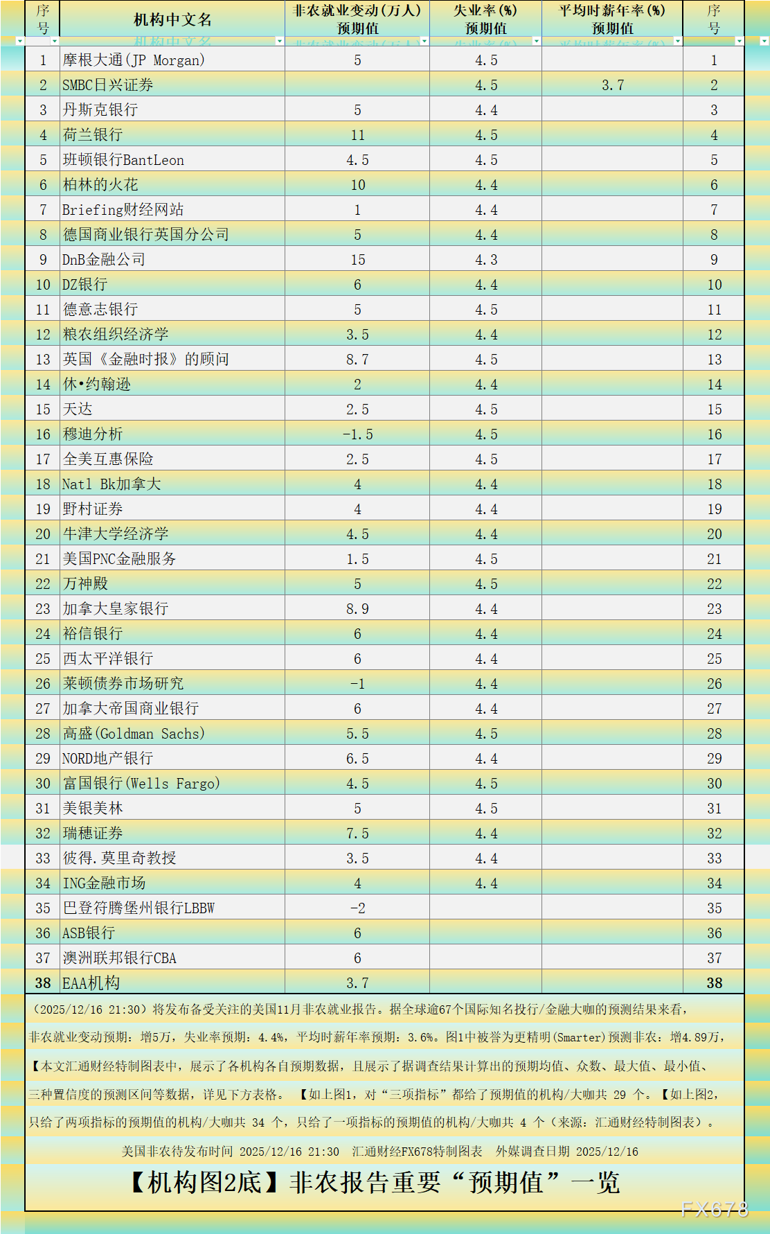 【本文汇通财经特制图表中,展示了各机构各自预期数据,且展示了据调查结果计算出的预期均值、众数、最大值、最小值、三种置信度的预测区间等数据,详见下方表格。