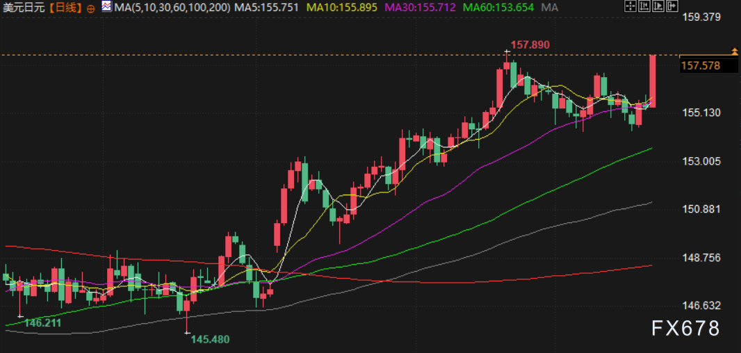汇通财经APP讯——美元兑日元周五上涨,最高升至157.76,为四周来最高水平,创下10月初以来最大单日涨幅。日本央行周五加息25个基点,将短期利率上调至0.75%,利率水平创30年来新高,这也是2025年1月以后,日本央行11个月来再次进行加息,这一政策调整突显出,在1990年房地产泡沫破裂导致物价持续数十年疲软后,通胀逐渐融入经济的重大转变中,日本央行决心继续加息。